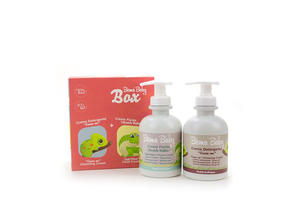 Bema Baby čistiaci krém „Cream-Me“ a jemný fluidový krém Bema Baby "Soft Velvet" v jednom balení. Objavte prípravky bohaté na cenné rastlinné výťažky a vyživujte pokožku dieťatka od narodenia.