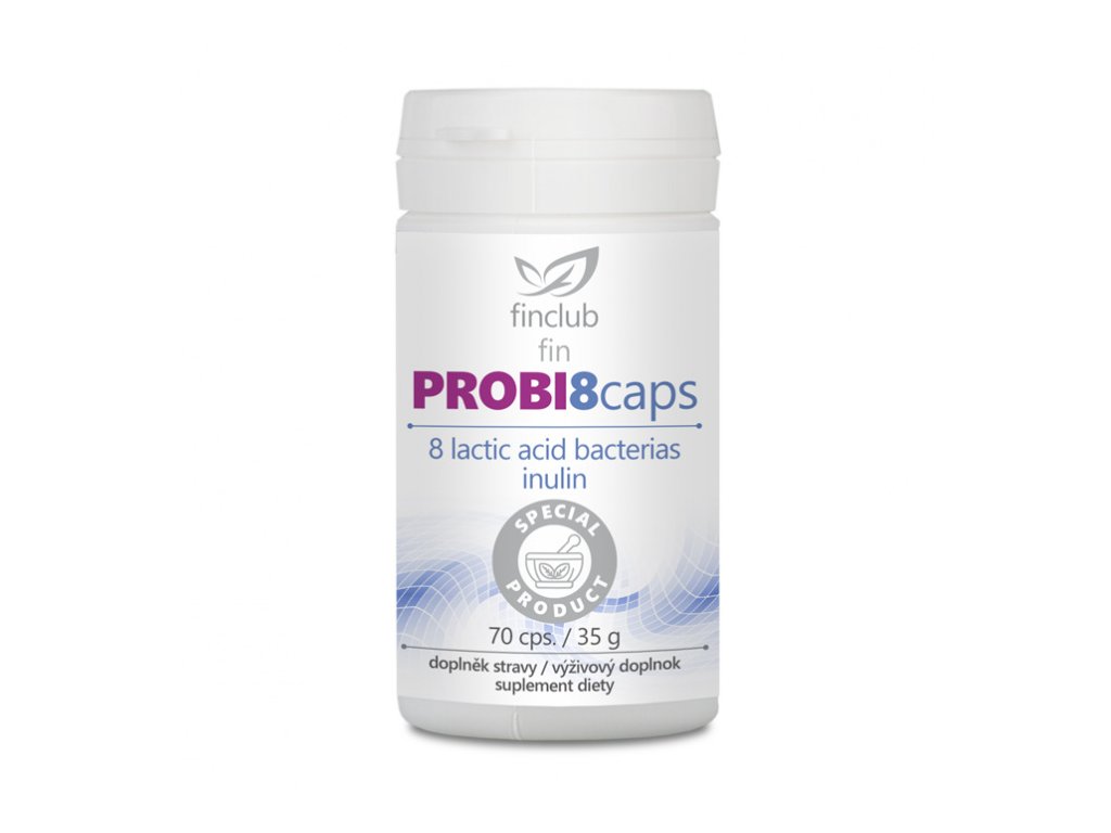 Probi8caps obsahuje inulín a zmes bakteriálnych kultúr, ktorá je zdrojom 8 druhov baktérií (pozri zloženie uvedené nižšie). Jedna kapsula obsahuje v momente výroby jednu miliardu probiotík. Výrobca použil patentovanú technológiu, ktorá chráni baktérie, kým sa nedostanú v aktívnom stave do čriev, kde sa uvoľňujú z ochranných vrstiev. Probiotiká pomáhajú obnovovať rovnováhu mikroflóry v črevnom trakte (môže byť poškodená napr. nevyrovnanou stravou alebo antibiotikami), majú pozitívny vplyv na trávenie a podporujú fungovanie tráviaceho traktu, prispievajú k zmierneniu intolerancie laktózy.